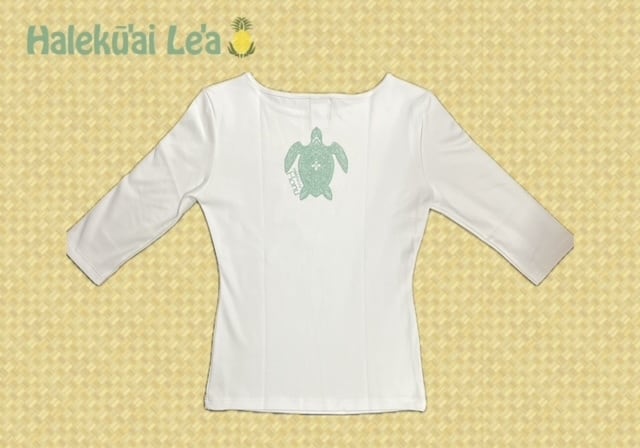 ホヌ7分袖 白/グリーン