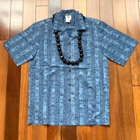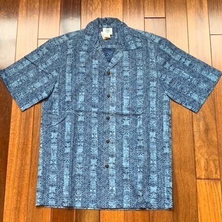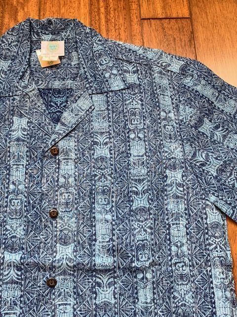 アロハシャツ ティキ ブルー 開襟